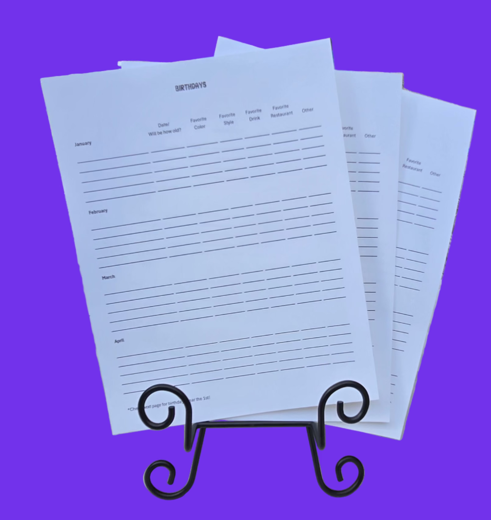 You will be the best friend, best sibling, best to everyone with this detailed birthday tracker. Fill this Birthday Tracker out, hang it on your fridge and never forget a birthday, but there is so much more than just a date! These 8 1/2 x 11 pages are 65 lb cardstock. This is a physical product and will be mailed.