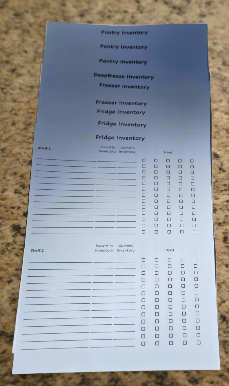 Keeping track of your food inventory helps to keep it from spoiling or buying too many duplicates. These 10 pages are laid out to match your pantry, refrigerator/freezer and deep freeze. You will be ecstatic at the money you will save on your grocery bill. Each 8 1/2 x 11 page is 65 lb cardstock. This is a physical product and will be mailed.