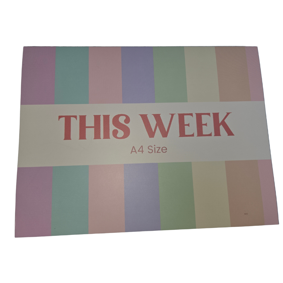 Keep your week on track with this beautifully designed weekly planner featuring a soothing pastel color palette that brings calm to your desk. The clean, uncluttered layout makes planning effortless—no overwhelming details, just space for what matters. With 52 pages of quality paper, you'll have a full year of weekly planning at your fingertips. Ink pens work best with these pages for crisp, lasting notes. Perfect for anyone seeking a simple yet stylish way to organize their schedule and priorities.